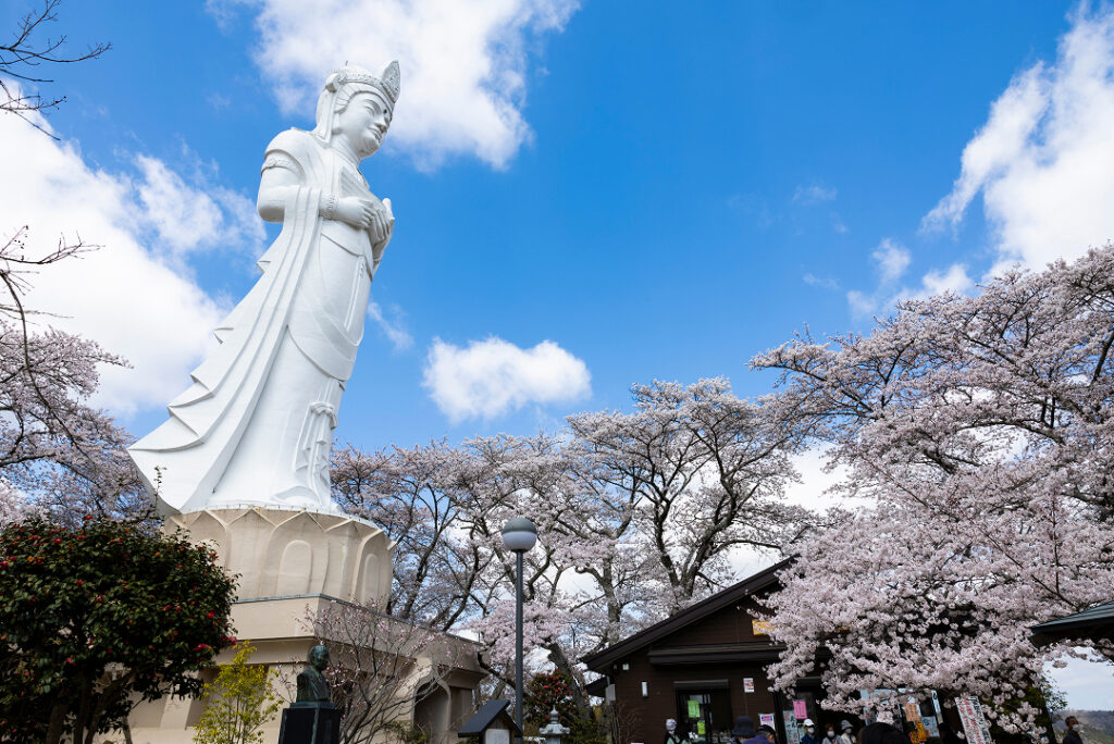 柴田町のシンボル船岡平和観音像がある山頂からふもとまで山一つ丸ごと桜に包まれる、船岡城址公園から、2町に跨る全長8キロの一目戦千本桜の白石川堤へ、ゆっくり歩いて散策する見どころスポットをご紹介します。
